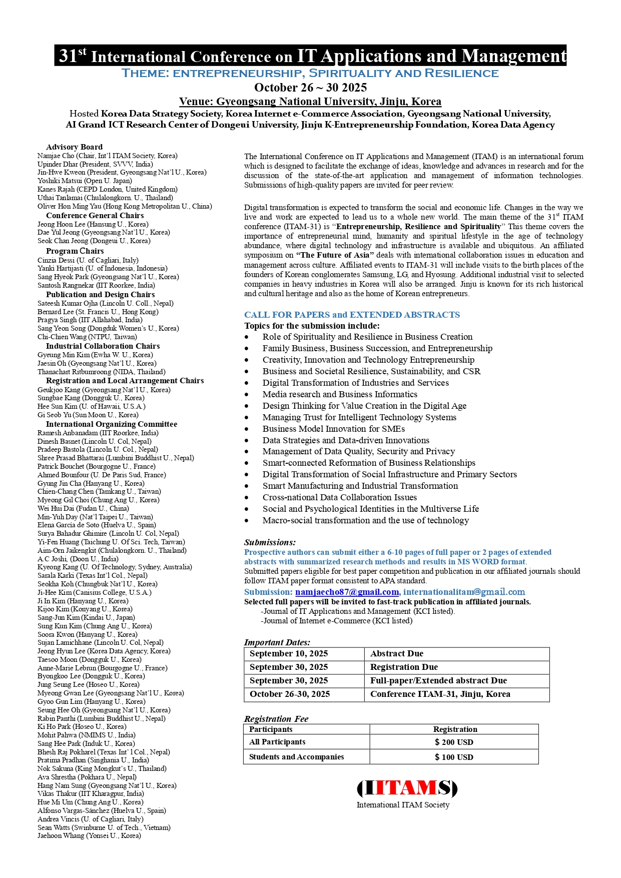31th International Conference on IT Application and Management (in Jinju, Korea)